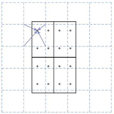 為了解決這個問題,Mask R-CNN對RoI pooling進行了修改: RPN中的anchors經過positive和negative的判斷後,再經過regression修正(此時的候選框座標可能有小數) 不對候選框(RoI)的座標取整數(保持有小數狀態) 將RoI直接平分成H x W個網格(bins),並且在每個子網格中平均取4個採樣點,每個採樣點的值由周圍最靠近的4個點做雙線性擦值(bilinear interpolation)取得 子網格的值由子網格內的4個採樣點做max/average pooling而得 在RoIAlign中,所有的值都為帶有小數狀態並沒有經過量化。